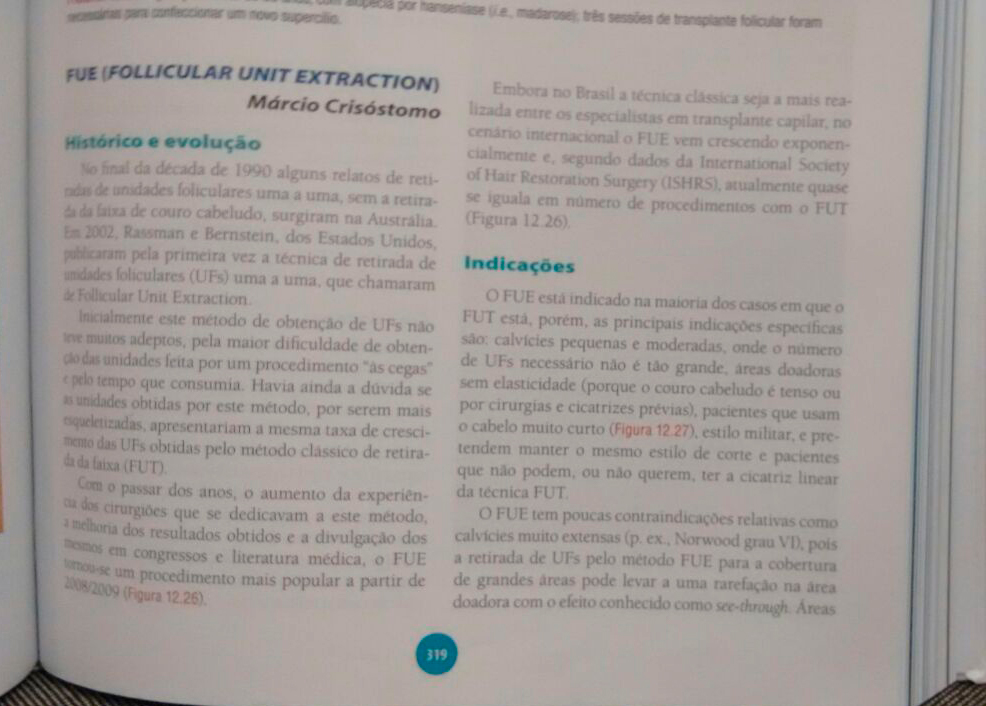 "O dr. Márcio Crisóstomo foi destaque no Livro do Professor e Cirurgião Plástico Ivo Pitanguy expondo sobre a técnica FUE ( Follicular Unit Extraction)."